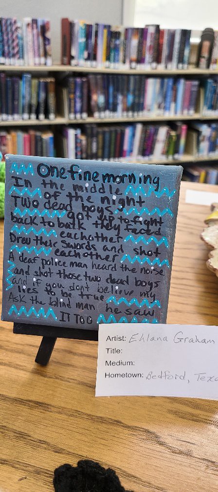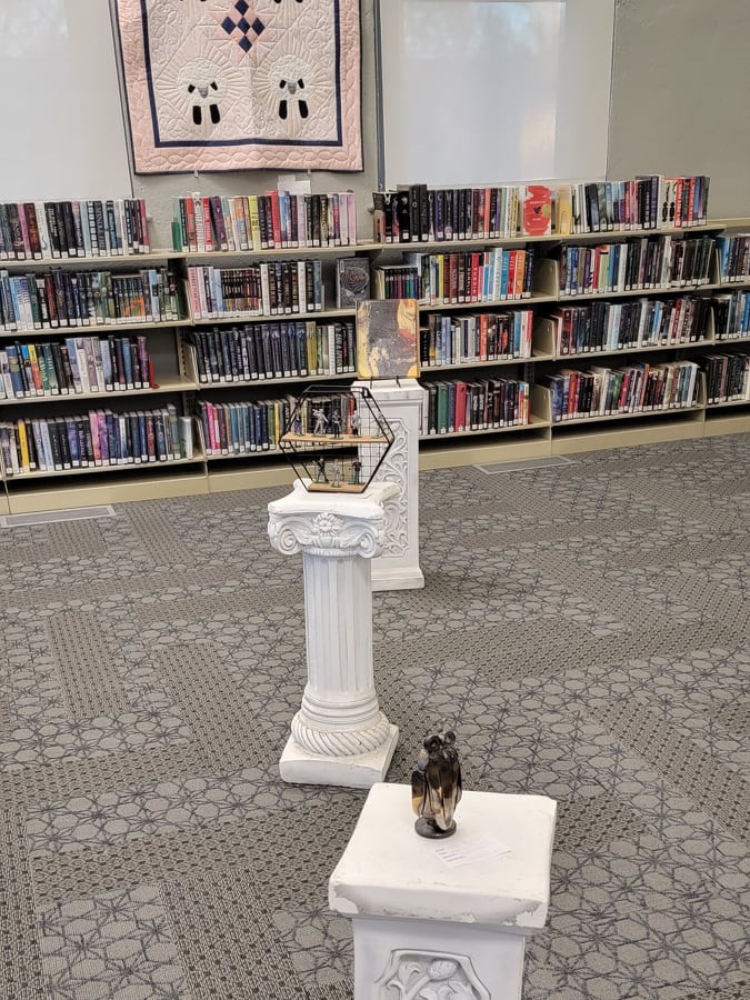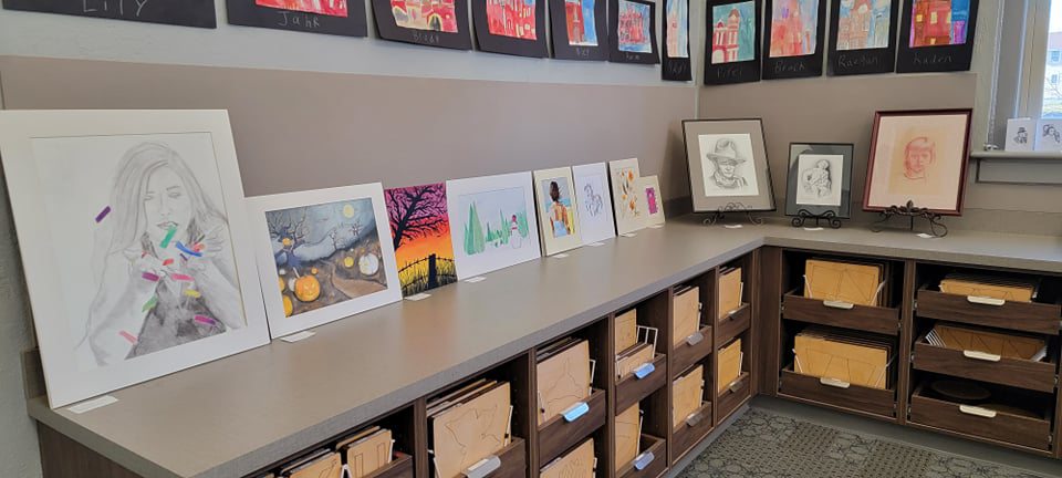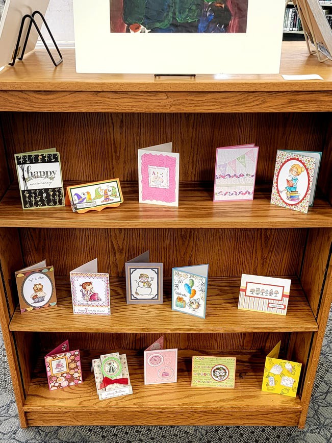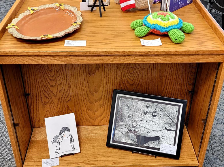 Thank you to every patron who loaned their pieces for display! We had fiber art, pencil drawings, watercolor paintings, painted figures, stippled art, intricate greeting cards, and so much more! We look forward to having another showcase next year, so be on the lookout for an announcement. Special thanks to USD 415’s art instructors for bringing in students’ work and to Stephanie Gummelt, who provided beautiful live music during the event.